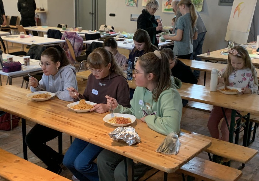 Zur Stärkung stellte der Förderverein der Gedächtniskirche ein Mittagessen zur Verfügung, von dem es am Sonntag noch einen Nachschlag gab, Mitglieder des Vereins halfen bei der Essensausgabe.